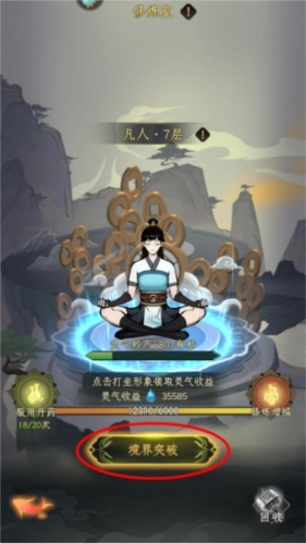 8、当拥有足够达到升级要求的灵气时,点击“境界突破”按钮即可。