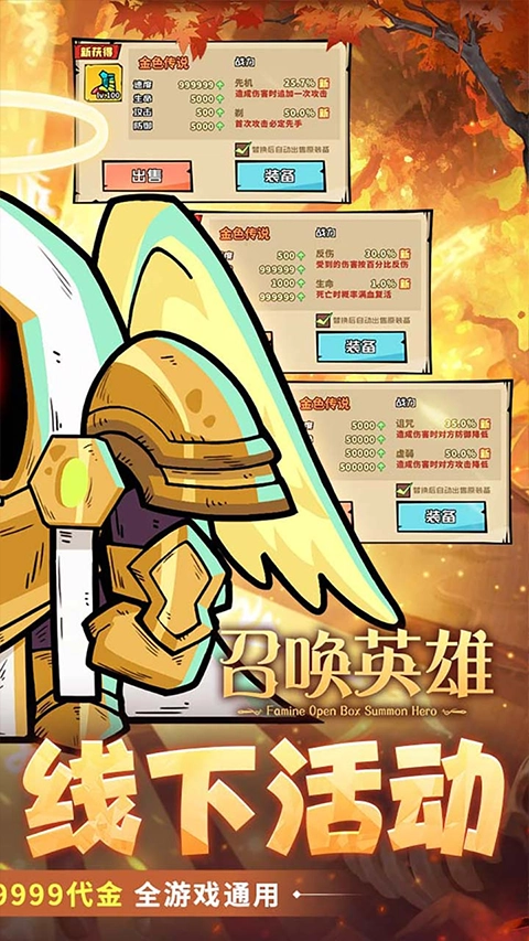 4、开启魔幻主题英雄宝箱,即得高爆装备与华丽装扮,踏上主角逆袭的无双之路。还有海量福利活动,无需氪金,纯粹享受游戏乐趣。