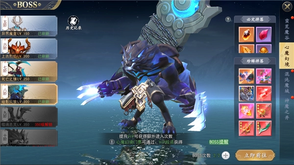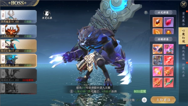 2. 心魔幻境每日能够挑战2次,提升VIP等级能够购买更多挑战次数。BOSS挑战次数每日零点重置。
