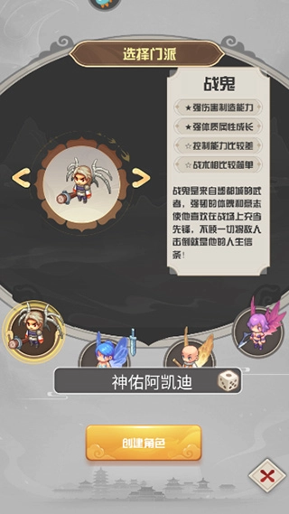 “战鬼”:具备较高的攻击力与气血值,防御处于中等水平,出手速度较慢。在30级之前,推荐全部属性点加力量,30级之后,可以适当添加少量气血。