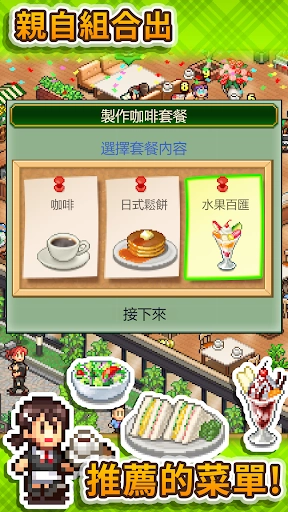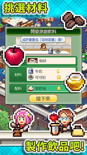 创意咖啡店物语是一款经营模拟游戏,你将成为一家怀旧咖啡馆的经营者,为顾客提供精致美味的饮料和餐品,你可以将咖啡红茶与各种材料进行搭配,创造出各式各样的饮品,满足顾客不同的口味需求。如果能提供符合顾客要求的饮品,就能吸引更多顾客光顾你的咖啡馆。此外,记得将特色餐点写进招牌菜单中,让顾客品尝到独特的美食。