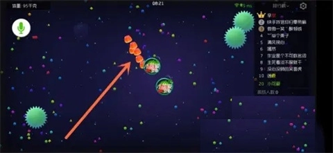 2、逃跑技术。遇到比自己大的球追击时,可以使用孢子喷射技能减小体积,加速逃跑。