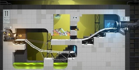2、还原传送门之中的小工具,包含动力凝胶、排斥凝胶、光圈弹射板、方块等道具,每种都有不同的用途。