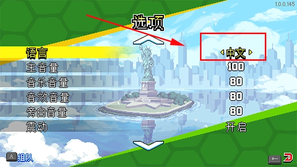 3、最后在第一栏“language”的设置里,将语言选择为“中文”,如此便能够把游戏切换为简体中文。