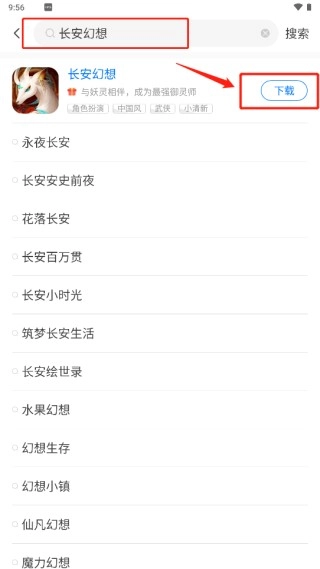 3、您可直接点击上图框选之处。倘若您还想知晓更多游戏资讯,点击《长安幻想》,即可进入游戏详情页面。