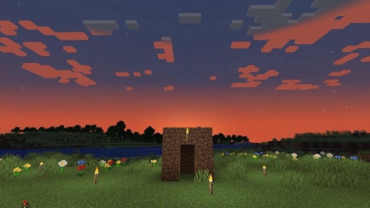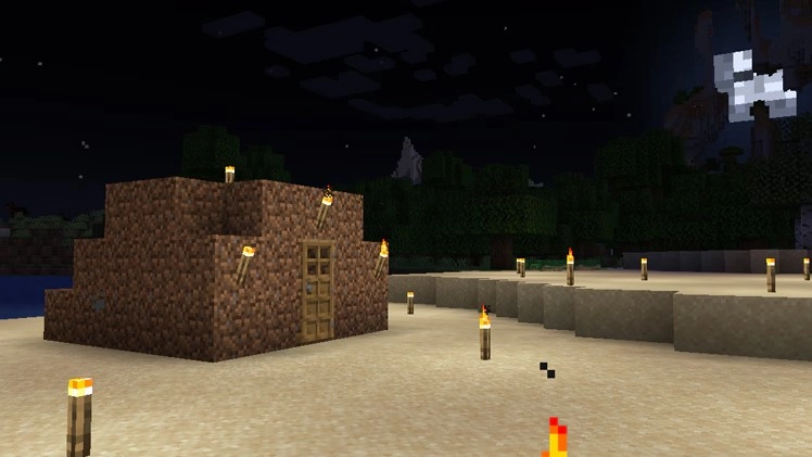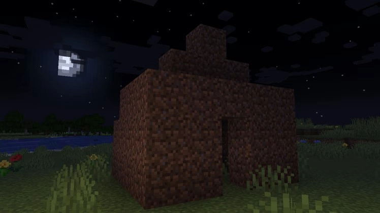 当夜幕降临,有一种应对方法是赶紧用泥土、圆石之类的方块把自己围起来。在Minecraft里,材料取之不尽,所以无需担忧找不到材料!