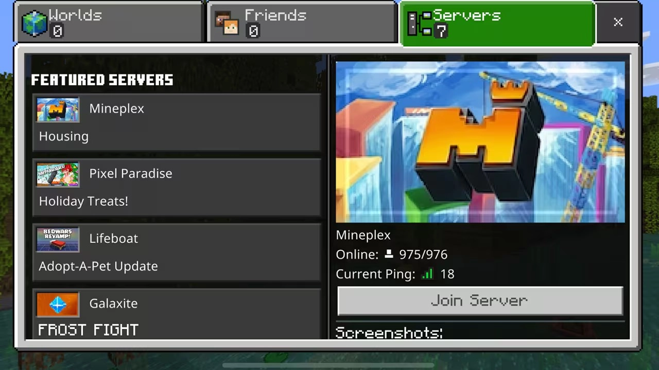 若要连接到Bedrock版服务器,需先启动Minecraft,接着点击主菜单里的“游戏”。随后您会进入一个界面,此界面设有三个选项卡,分别为“世界”、“好友”以及“服务器”。