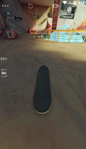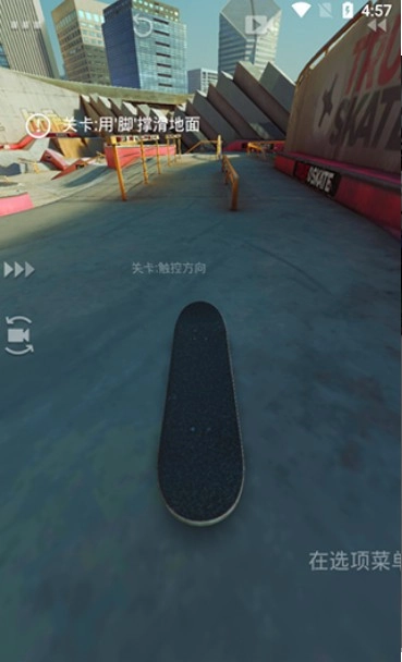 模拟脚部动作时,前进并非向前划动,而是在滑板侧边向后滑动。此外,“踩”在滑板的中侧位置,同时稍作划动,就能实现转弯,以此操控滑板改变方向。