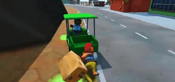 1、游戏里能选择的派送方式多种多样,十分新奇,像用拖车去送快递,只是玩家是被拖车拖着前行的,毕竟小拖车尺寸不大,要坐上去确实不太容易。