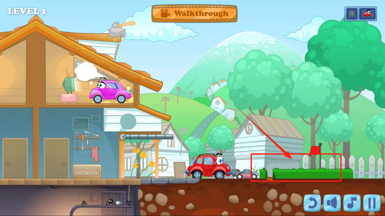 1. 踏入关卡1,掌控红色小车自阁楼启程。轻点阁楼区域,引领小车移动,凭借场景互动机制,开启下楼探索之旅。通过操作来规划行车路线,体验车辆冒险的最初乐趣。