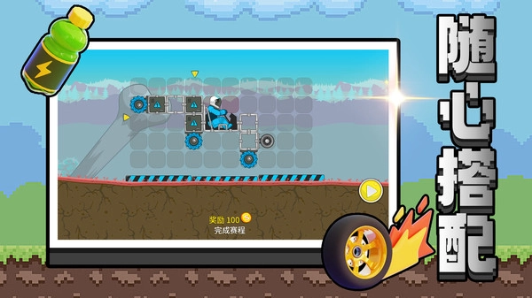 3、在行驶途中收集金币,同时要维持车辆平衡,避免翻车。选择较远的路线能够获取奖励,进而解锁新的部件与场景。