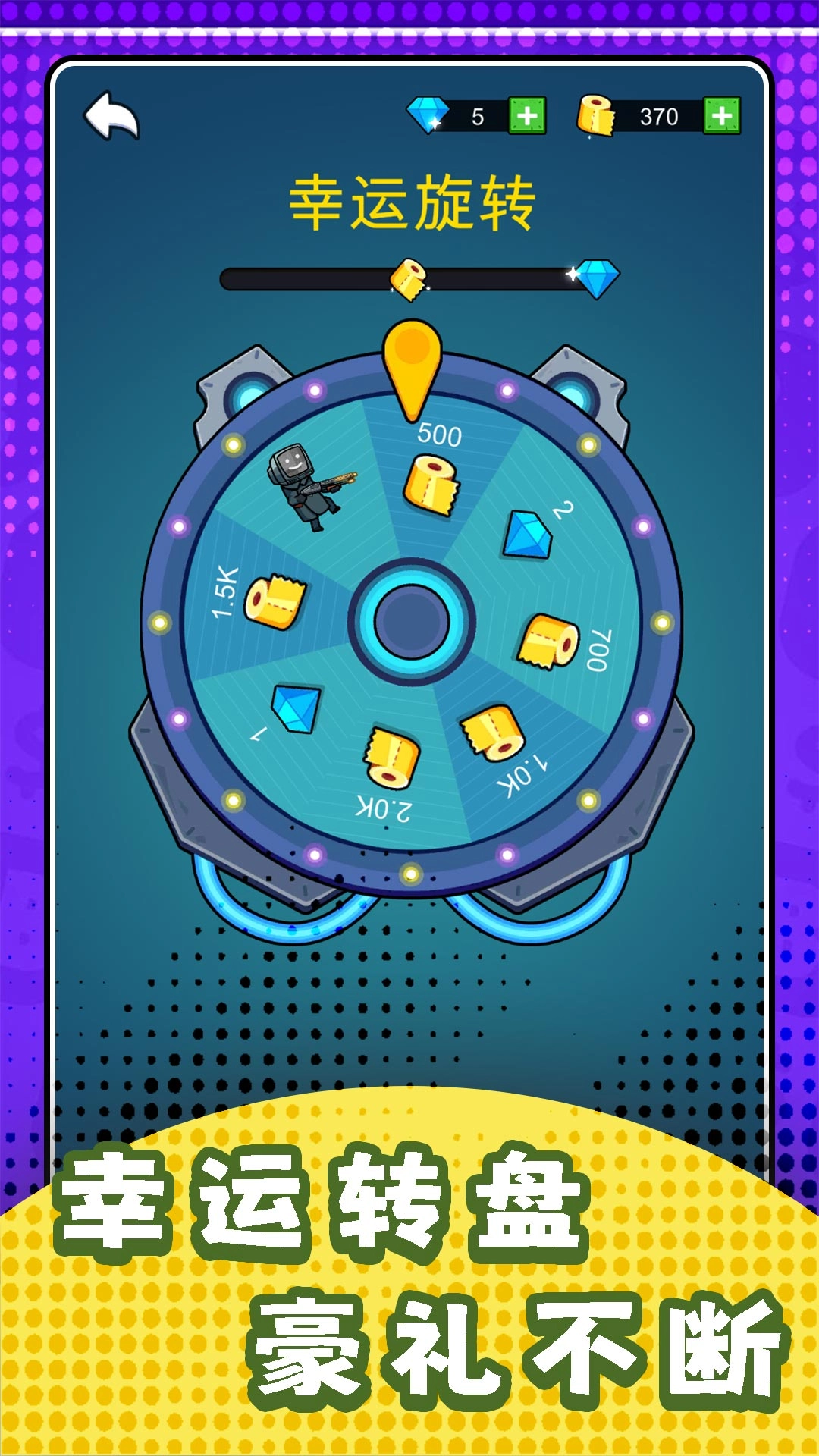 2、游戏设有幸运转盘这一趣味玩法,将射击战斗与之相结合,让玩家有机会赢取丰厚奖励,进一步提升游戏的期待感。