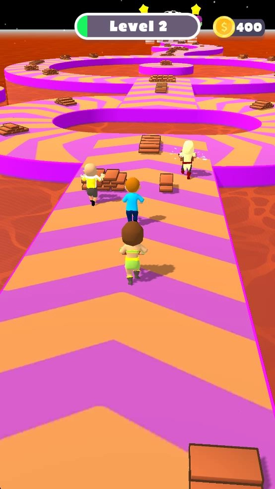 1. 游戏开始时,我们身处黄色跑道场景,操控角色顺着跑道奔跑,过程中要留意避开其他人物,合理规划路径朝着终点进发。