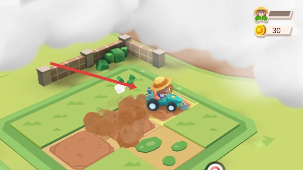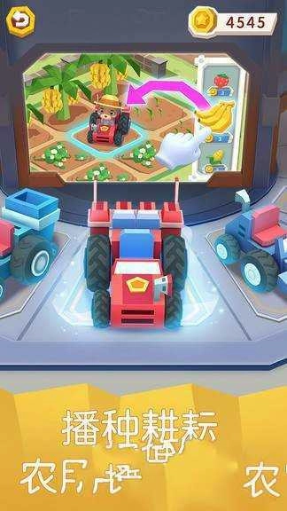 3、踏入游戏场景后,操控驾驶蓝色拖拉机的小熊,依照箭头的指示,于农场中开展耕地等相关操作,就此开启农场劳作。