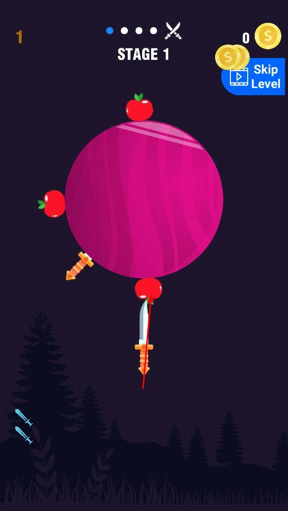 2、切苹果获取新飞刀:完成切苹果任务,就能解锁更多趣味十足的飞刀。每一款飞刀都有着独特的外观与投掷手感,持续解锁新飞刀,能让玩家始终保持新鲜感,促使他们不断参与挑战,以集齐完整的刀具库。