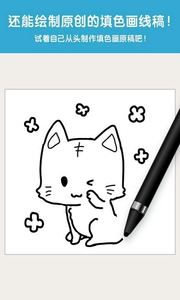 2、原创制作功能:既支持用户从零开始亲手制作填色画原稿,也允许通过读取照片生成填色画,充分给予用户发挥创意的空间,助力他们打造独一无二的专属填色画。