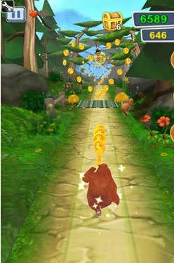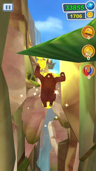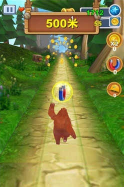 3、正如前文所提及的,你的目标是竭力协助熊大跑得更远,并且尽可能多地收集沿途的金币。该游戏的视角是面向角色前方推进的。
