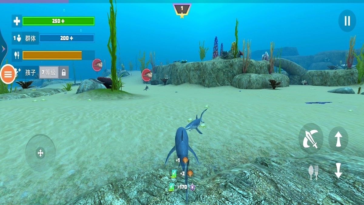 3、依靠持续不断地捕猎来积累进化点数,这些点数能够用来提升鲨鱼的体型、防御力等各项属性,使鲨鱼逐渐强大起来,从而得以应对更为强大的敌人以及更加恶劣的环境。