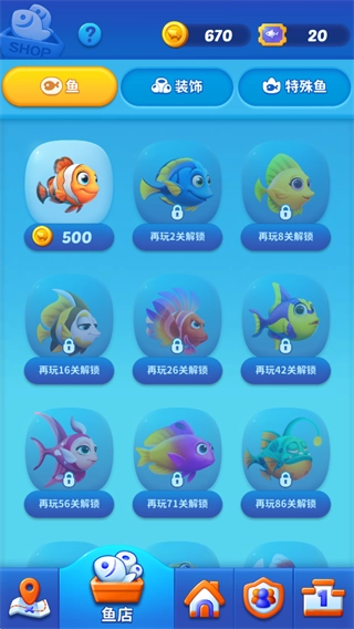 5、在鱼店可用金币购买【鱼类和装饰品】