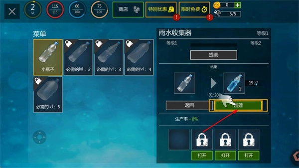 2、于生产菜单里,能够创建雨水收集器等生存设施,这些设施用于收集海水的水分。