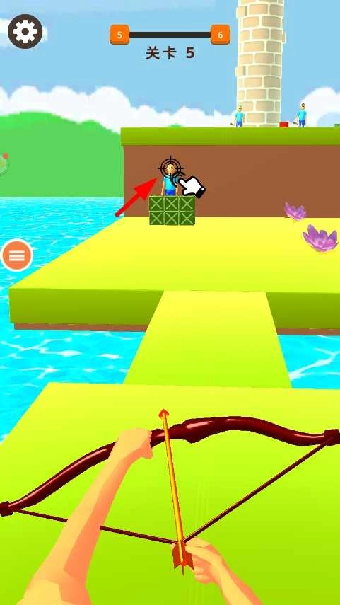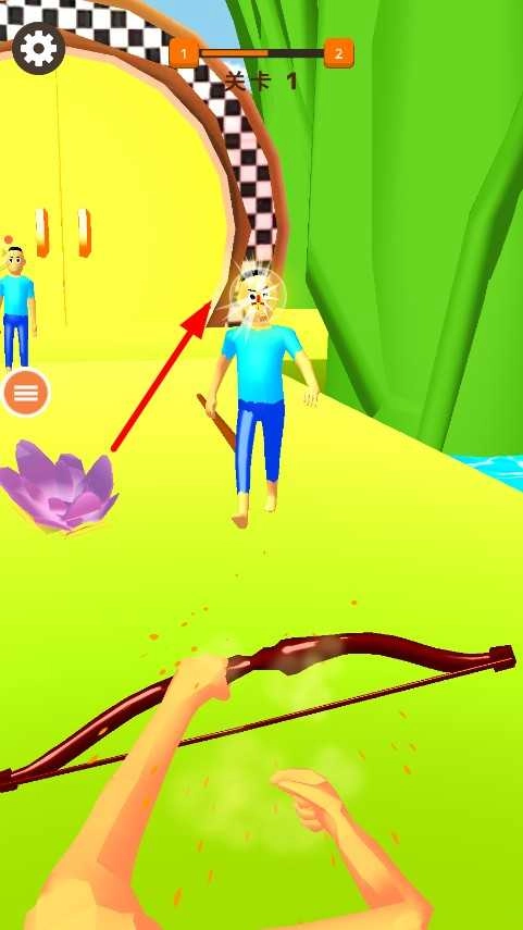 1. 踏入关卡后,将目标锁定在人物身上,拉开弓箭,对角度与力度进行调节,随后松开手指射出箭矢,努力命中目标,开启闯关挑战。