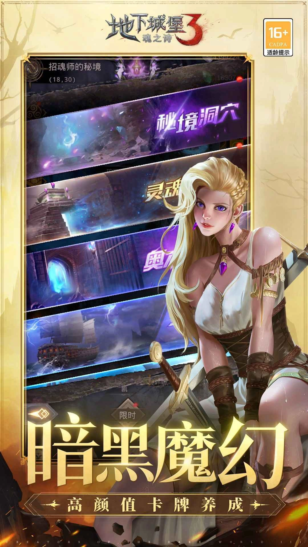 《地下城堡3》是一款主打探索冒险玩法的游戏,它以充满魔幻暗黑风格的画面构建起一个奇幻大陆。在这片神秘大陆上,玩家将化身为拥有唤灵能力的招魂师,于地下城堡中展开探索冒险。不仅如此,玩家还能够召唤形形色色的英灵伙伴,组建最强小队,从而开启末世冒险征程。