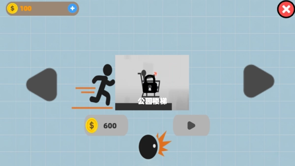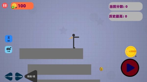3. 当进入关卡后,玩家得对火柴人的姿势进行调整,借助高低落差,使火柴人朝着楼梯底部持续下坠。