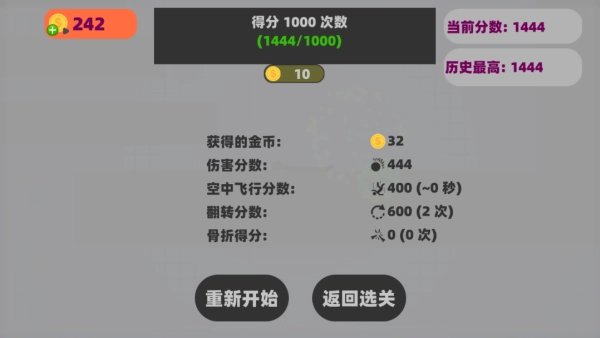3. 分数优化目标:基于坠落高度、撞击次数、特效触发等多个维度来计算得分,以此激励玩家尝试组合不同的坠落方式,力求突破高分记录。