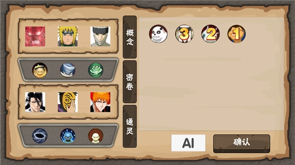 2、稍等片刻后,便会进入选角界面。在此界面,玩家需挑选三个角色组成自己的队伍,同时挑选三个对手。此外,玩家还得选取三个不同的密卷以及通灵。玩家务必谨慎选择,因为密卷与角色的搭配极具战略意义,把握控制替身的时机同样至关重要。