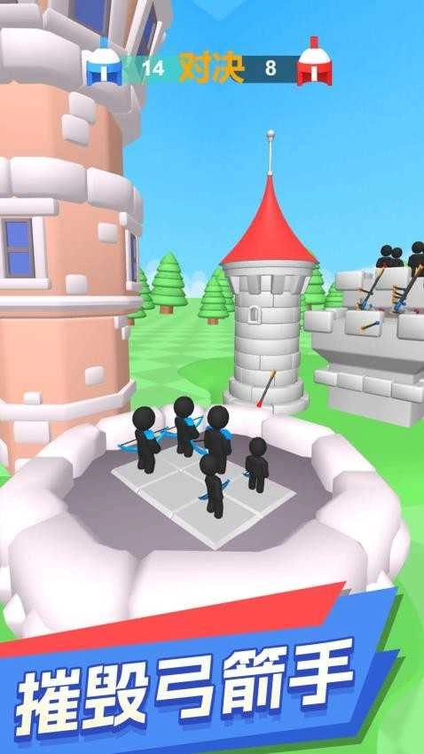 射不中算我输,这是一款集策略与技巧于一身的休闲益智射击对战游戏。该作品精心打造了欢乐的对战模式,在战斗中,你要迅速操控队伍,以弓箭向敌人发起进攻,同时安排护盾战士抵御对手的弓箭攻击,降低己方伤亡。要始终坚守守护堡垒,在挑战阶段会出现一些有利情形,需快速捕捉信息并结合实际战况,从而获取优势。攻防战马上就要开启了,在挑战过程中务必留意各个环节,如此才能持续对敌人展开攻击。
