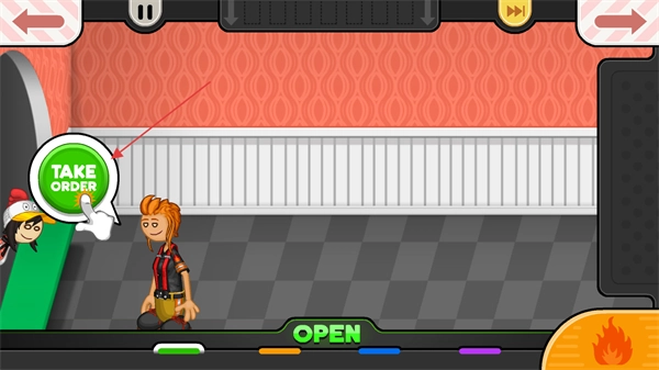 1. 进入游戏开启营业,点击绿色按键开始记录排队顾客的需求并生成菜单。