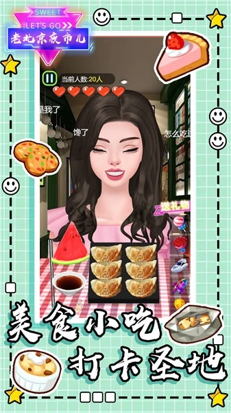 2、游戏画面精美卡通,你能在其中品尝各式各样的美食。在超多场景里探索不同的美食店铺,游戏内容精彩纷呈。快来老北京开启你的美食品尝之旅吧!