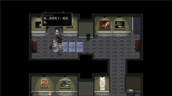 3、操控角色依照剧情指示,跟随前行来到展览馆。沿着路线,径直走到馆内左侧的通道处,映入眼帘的是意外场景,此刻你只想马上离开此地。
