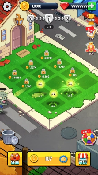 3、当特定组合的植物彼此相邻时,会自动生成一种能够增强攻击范围的光环效果。这种隐匿的羁绊系统,进一步增添了游戏的深度与策略性。1、游戏开局时,要在最后一排集中种植向日葵,并迅速将其合成到三级,这样才能保证在游戏中期拥有充足的阳光储备。毕竟,充足的阳光是能够持续种植植物以及对植物进行升级的根本条件。