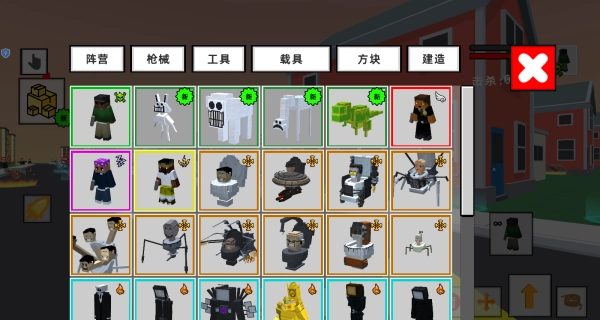 2、游戏设有丰富选项,涵盖阵营、枪械、工具、载具、方块以及建造等,玩家可自由挑选。