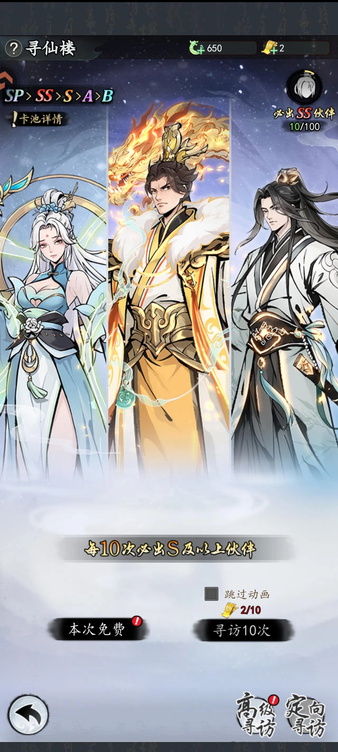寻仙令建议优先抽取核心SS级伙伴,而唤仙令则着重用于为主C伙伴(例如叶天帝)进行升星。