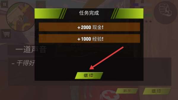 3、任务完成后,奖励界面会自动弹出。在此界面,你可以点击“继续”领取现金与经验,随后延续沙盒求生之旅,解锁更多有趣玩法。