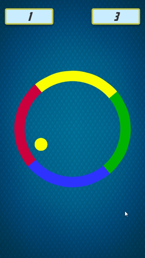 2、小球的颜色会随机变换,同时转动速度也会渐渐加快。你需要时刻留意小球颜色与圆环区域是否匹配,在恰当的时机迅速点击屏幕,让小球在对应的颜色区域改变行进方向,防止出现失误。