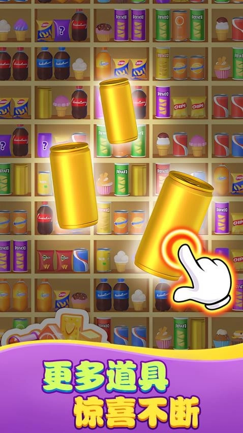 2、商品逐步解锁呈现:随着关卡不断深入,多种商品会逐渐解锁并呈现出来。从水果、甜点到日常用品,丰富多样的商品种类,让消除过程充满新鲜感。