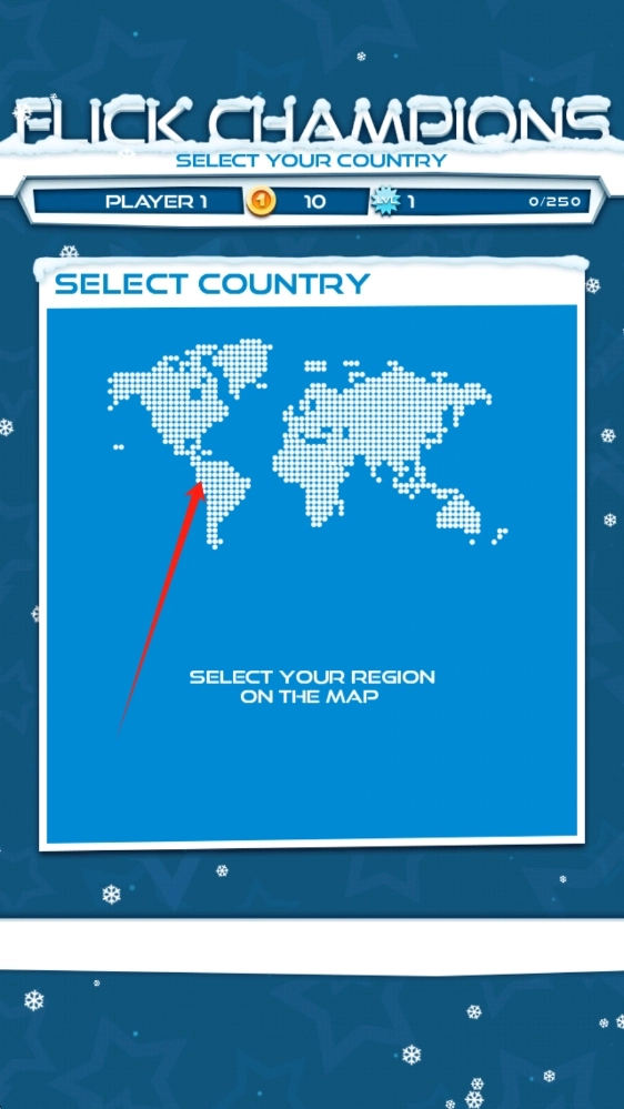 1. 在Flick - Champions界面的世界地图上,挑选代表区域,开启冰雪竞技之旅,点击以选择地图。