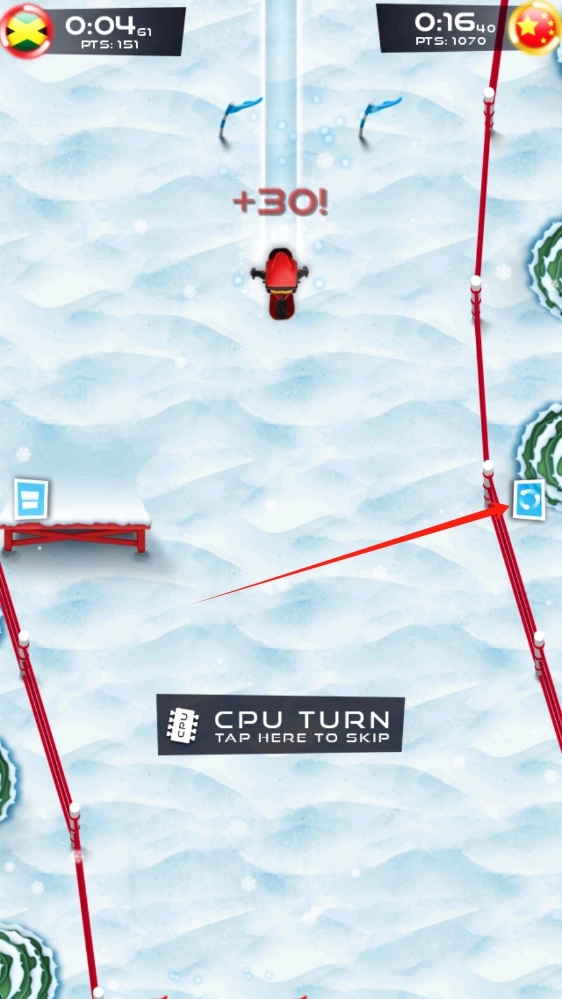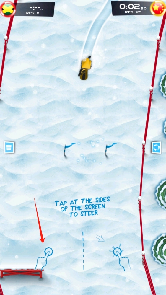 2、比赛过程中,点击屏幕左右两侧,以此来操控雪地载具的方向,在赛道上灵活地穿梭,努力取得领先。如需向左转向,点击并向左滑动。