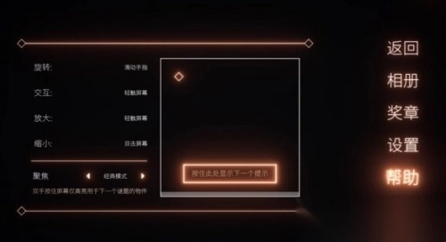 设有可按需开启或关闭的提示功能,当长时间未进行任何操作时,关键区域会自动高亮,以此提示下一步的解谜方向。
