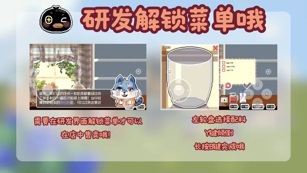 游戏为玩家打造了别具一格的小镇背景,在这里,你可以着手经营一家属于自己的奶茶店,还能尝试制作各式各样口味丰富的饮品。