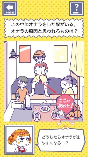 仔细查看卧室里的各个角落,通过点击那些看起来不太对劲的东西,一步步揭开导致放屁现象的根源,从而完成这个有趣的解谜任务。