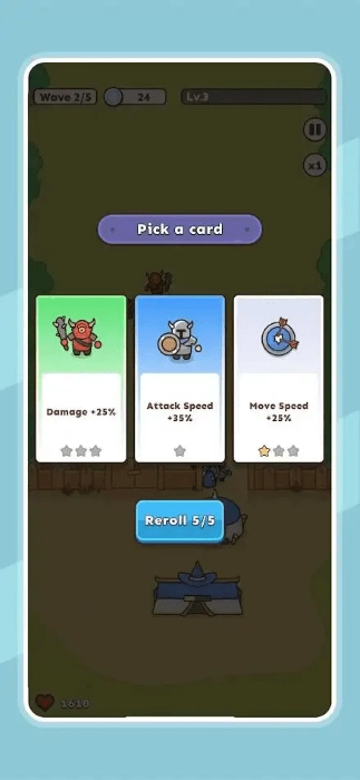 这是一款结合了塔防与肉鸽玩法的游戏。玩家需要通过合并、构筑与强化防御设施,运用精妙的布局策略,为王国打造坚不可摧的壁垒,抵御源源不断的敌人攻势,以最优策略赢得最终的胜利。
