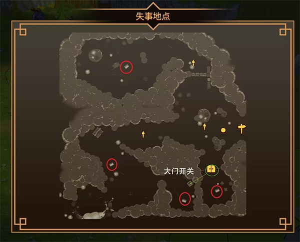要开启左下角的门,得先操作地图上标记为×▲的开关;左侧的门需要银钥匙才能解锁;中间那扇门得用齿轮石块来打开;右侧门的开关藏在中间门后方哥布林聚集的地方;中间地穴的开启步骤是:先在门内外都放置齿轮石块,接着按顺序移开大门上方的石块,再挪动地穴门口的石块,这样中间大门关闭的同时,地穴的门就会打开了。