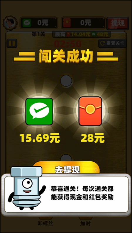 这款卡通风格的休闲解压游戏,核心玩法是通过拆解关卡中的关键螺丝,让各类钢板顺利脱落以完成挑战。游戏设有时间限制,需要玩家精准判断操作顺序,同时还提供多种辅助道具,趣味十足的体验等你来解锁!