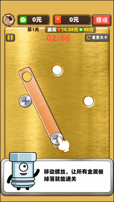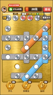 这个游戏的操作逻辑很直观:通过调整螺丝的位置,使所有金属板材都能顺利脱落,就能完成关卡目标。