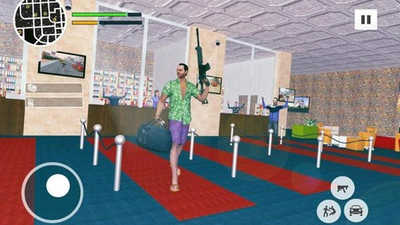 进入游戏界面后,点击开始按钮就能开启在迈阿密的黑帮冒险之旅,还能体验到丰富的游戏剧情和任务。