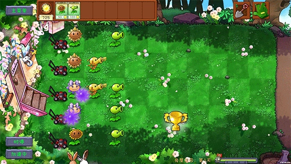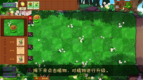然后继续种植植物,升级植物,抵御僵尸的入侵